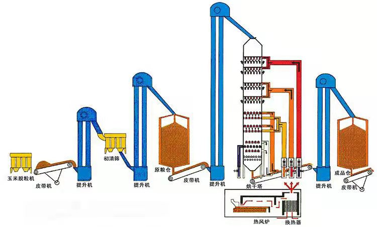 連續(xù)式糧食干燥機是以煤、稻殼或秸桿作燃料,經(jīng)過燃燒和熱轉(zhuǎn)換為干凈熱空氣,烘干谷物。
